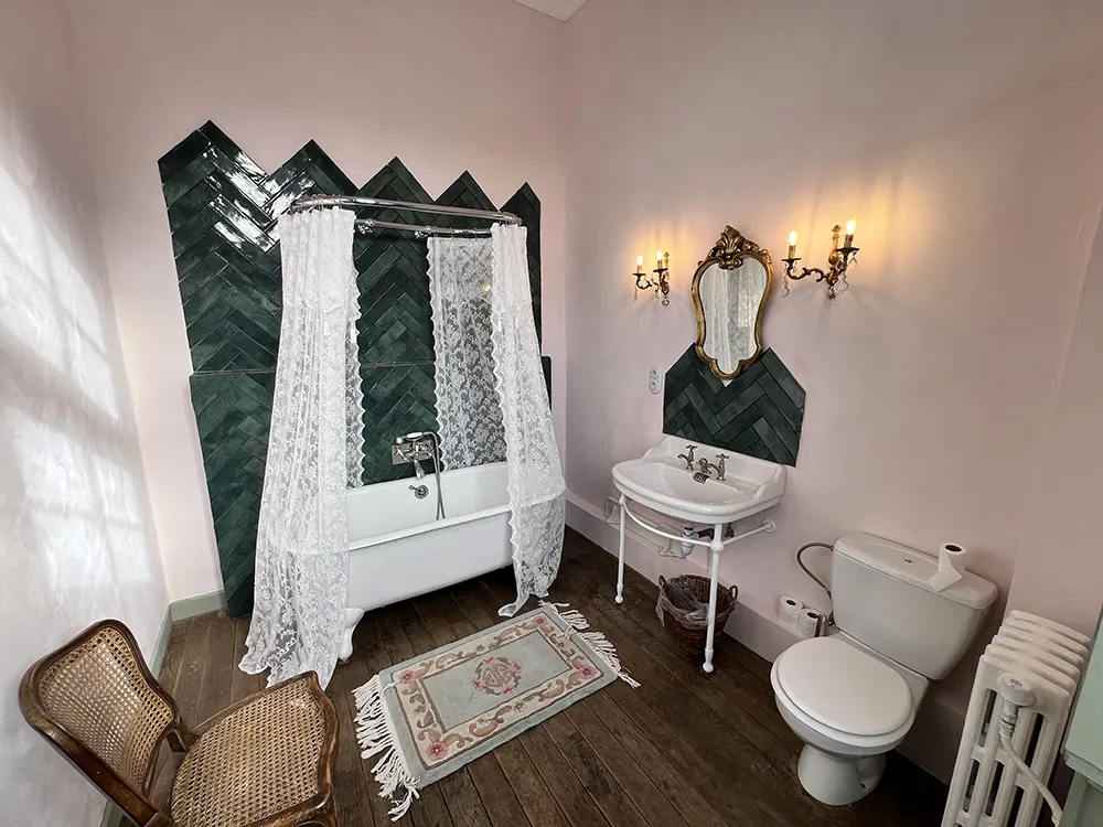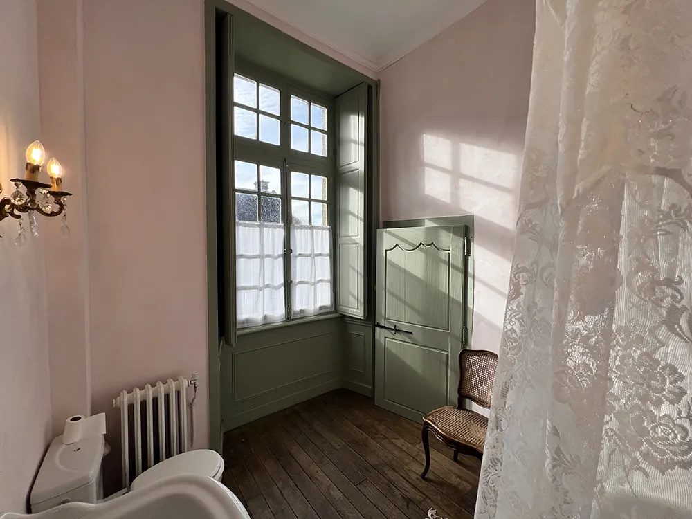 Its carved period bed, antique furniture and precious fabrics create an intimate, luxurious ambience, ideal for a romantic getaway or a peaceful duo break in the heart of Normandy’s heritage. Overlooking the castle’s inner courtyard, this room combines historic decor with soothing comfort.